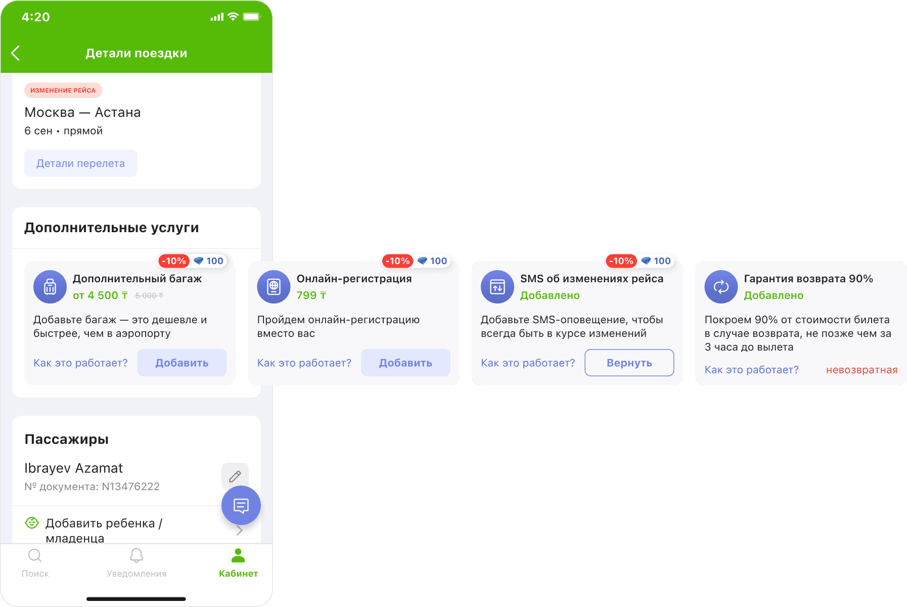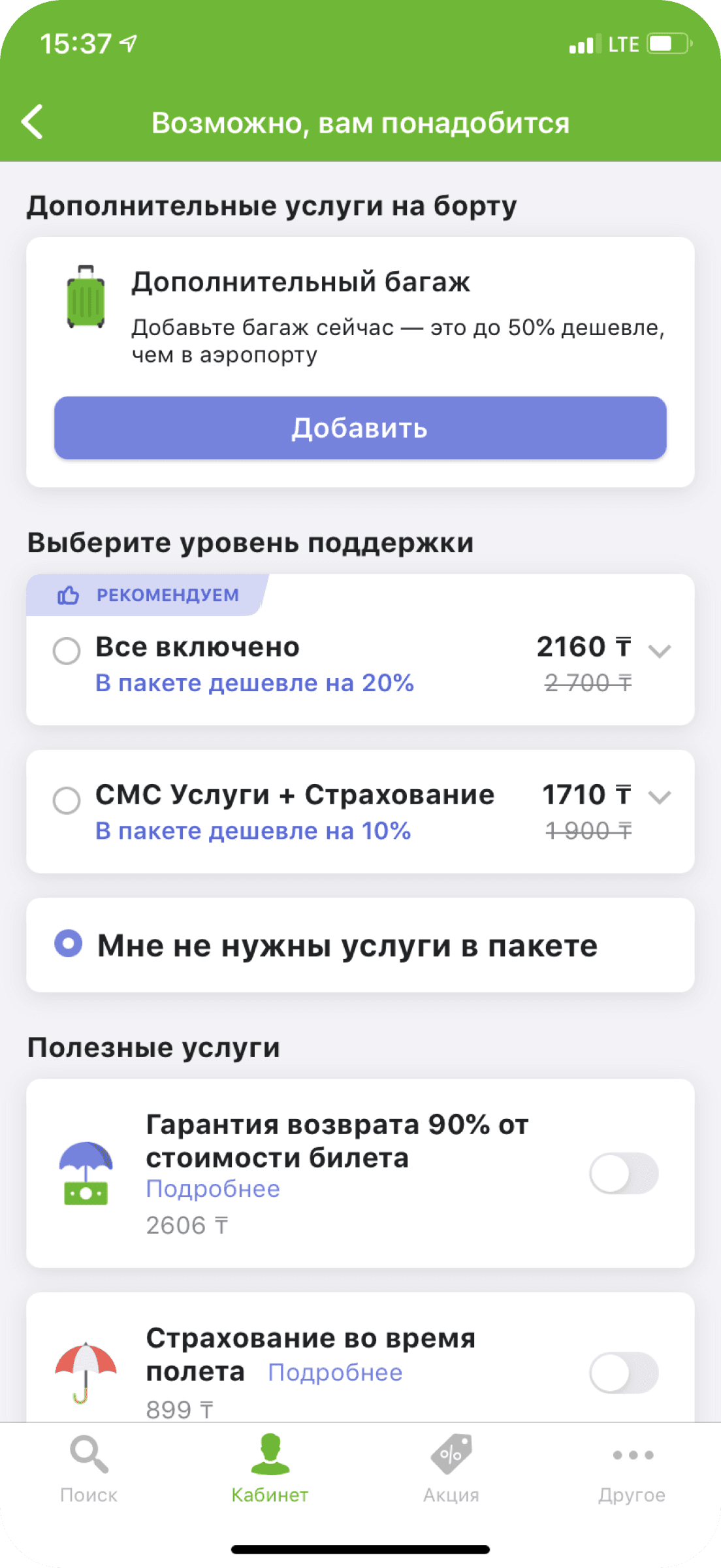 возможность докупить услуги позже снижает финансовую нагрузку при покупке билета